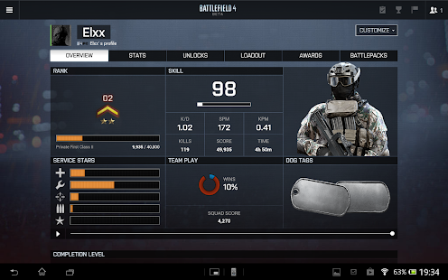 Battlelog even connects to Battlefield™ 4 while you’re playing the game! Now you can find the server you want to play on or join a friend directly from the Battlelog app with Remote Joining. You can also customize your Loadout in real-time while you’re playing, and on tablet you can even use BattleScreen to get a fullscreen, real-time minimap of the game you’re playing.